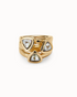 18k gold plated ring with three triangular shaped multicolor crystals.Ser camaleónica is to adapt to everything with talent, while still being you. Is being versatile, resilient and always ready to reinvent yourself. Let your jewelry become a kaleidoscopic and change color. Nobody gets bored with you. Bring fun and dynamism to life. Like the fresh touch of the faceted crystal pieces that play with dimensions. The time to Ser camaleónica is now.