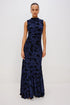 Soft elegance meets sculptural impact in the Cosmos. Designed with a high neckline, sleeveless silhouette, and side ruching for a flattering fit, this maxi dress is cut from lined stretch mesh with velvet-flocked florals for striking dimension.
