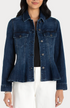 Elevate your denim game with this stunning fit and flare denim jacket. Designed to complement your silhouette, the tailored fit through the shoulders and chest flows into a flattering flared hem that adds movement and dimension. Perfect for layering over dresses, tees, or sweaters, this versatile piece transitions seamlessly from casual weekends to dressed-up evenings. The classic denim construction ensures durability and timeless style, while the structured cut keeps you looking polished and put-together. A wardrobe essential that works as hard as you do.