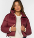 This cropped funnel neck puffer jacket featuring drawstring hem, snap and zip closures, side pockets and has a lightweight airy feel.