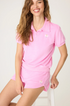 Add a playful twist to your lounge look with these pink vintage terry shorts. The curved hem and delicate embroidery bring feminine flair to this comfortable, laid-back essential.