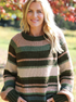 CREW CHUNKY features bold stripes in rich autumn tones, crafted from a soft, slightly textured chunky wool blend yarn. Designed with a relaxed boyfriend fit and raglan sleeves for easy movement, it's finished with ribbed detailing at the neckline, cuffs, and hem for a clean, polished look.