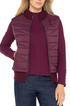 Build up your layered looks with this versatile quilted vest boasting a knit collar, back and hem for a cozy finish.