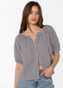 This short puff sleeve peasant top features a button up front and airy lightweight feel and slightly textured to the touch.