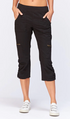 A stretch poplin crop with comfort & style. Features a pull on elastic waistband, two front pockets and two cargo zip pockets, clean back and style lines for added comfort.