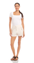 Upgrade your wardrobe with our Alma shorts. Made with a stretch material, these shorts provide the perfect balance of comfort and style. The ecru color adds a touch of elegance to any outfit. Experience the benefits of a versatile and trendy addition to your collection.