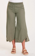 Our favorite wide leg pant in a slightly modified fabric for a less wrinkled look. This one features a linen/cotton blend body with an elastic pull-on waistband, wide leg, and an asymmetric handkerchief hemline with raw edges.