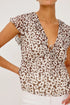 An ultra-feminine take on the transitional top, the Carmine is a chiffon top with flutter sleeves, a ruffled neckline, and fluid fit. It features ruffles at the v-neckline, a front tie, and empire waist silhouette.
