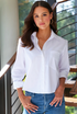 • Finley "Andie" silky poplin white button-down cropped shirt