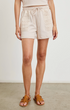 The Eddie is a versatile lounge short crafted from soft cotton terry with crochet accents and an elastic drawstring waist. Designed with a high-rise fit and light stretch for everyday comfort.