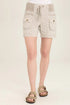 This classic poplin drawstring-waist short features a raw-edge contrast ribbed waistband, twill tape details, and cargo pockets with flat snaps.