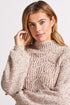 Cooler days deserve a toasty option and this chunky-knit sweater that's sizzling with style is ready for duty. We love the cozy funnel neck, loose fit, long sleeves with drop shoulders and puffed bottoms, ribbed trim at the cuffs and hem, and multicolor yarn that brings a playful confetti effect to match your unique charm.