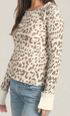 The Dylan Kass waffle knit top combines a distinctive allover animal print with refined raw edge detailing and contrasting cuffs, creating a sophisticated yet casual look. Its relaxed fit ensures comfort throughout the day, making it a versatile piece for effortless styling in any wardrobe.