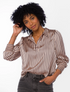 This long sleeve split neck blouse features smocked cuffs, high-low hem and crafted from a silky light weight fabric.