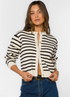 This striped cardigan is crafted from 100% cotton with a comfortable medium-weight feel, long sleeves, button-up novelty buttons and front patch pockets.