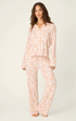 Soft, serene, and beautifully bloomed. This modal jersey pajama set features an allover blush floral print that brings a touch of spring to cozy nights. The racerback tank and matching wide-leg pants make lounging feel light, lovely, and endlessly comfortable.