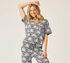 Black, white, and tropical all over. Crafted from smooth, cooling modal, a short-sleeve button-front top easy, breezy comfort. Neon pink piping brightens the bold palm pattern, making it perfect for everything from a lazy weekend morning to winding down after a long day. This style is made in a Women Empowered Factory (At least 51% owned, controlled, or managed by a woman or women).