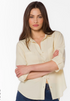 This rolled tab sleeve Tencel shirt features a button front closure, chest patch pockets, a rounded high low hem and with a soft fluid drape.