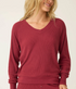 Sometimes the simplest pieces are the ones you reach for most. This ribbed lounge top is crafted from soft cotton-blend jersey with a V neckline, raglan sleeves, and relaxed fit. The deep berry hue adds a sense of richness and warmth—perfect for everything from laid-back mornings to winding down at night.